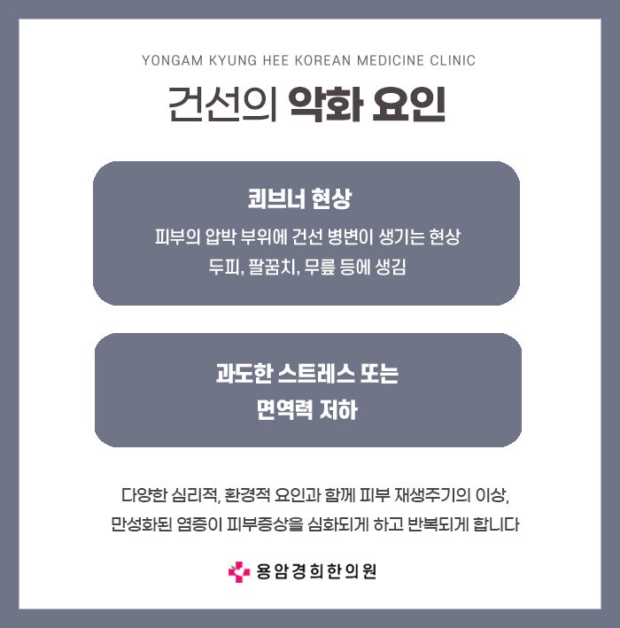 건선도 유전적인 요소가 강한 질환입니다. 부모에게 건선이 있을 경우, 자녀에게도 발생할 가능성이 높습니다. 습진은 면역 시스템이 자극에 과민 반응을 보이면서 염증이 발생합니다. 알레르기나 특정 물질에 대한 과민 반응이 자주 일어날 수 있습니다. 건선은 자가면역질환으로, 면역 세포가 자신의 건강한 피부 세포를 공격하는 방식으로 발생합니다. 이로 인해 용암동피부 세포의 과도한 재생이 이루어집니다. 극단적인 온도, 건조한 공기, 먼지, 특정 화학 물질 등이 피부를 자극하여 습진과 건선을 유발할 수 있습니다.