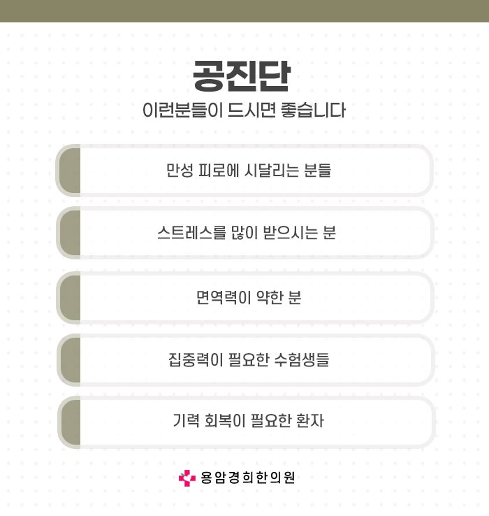 금천동 공진단치료 체력 감소나 회복에 도움을 주는 처방