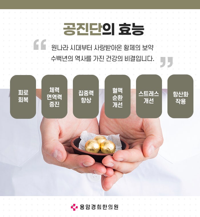 하지만 공진단을 복용하기 전, 자신의 건강 상태를 고려하여 의료진의 상담을 받는 것이 중요합니다. 체력 증진과 기력 회복을 원한다면, 공진단이 도움이 됩니다. 감사합니다.