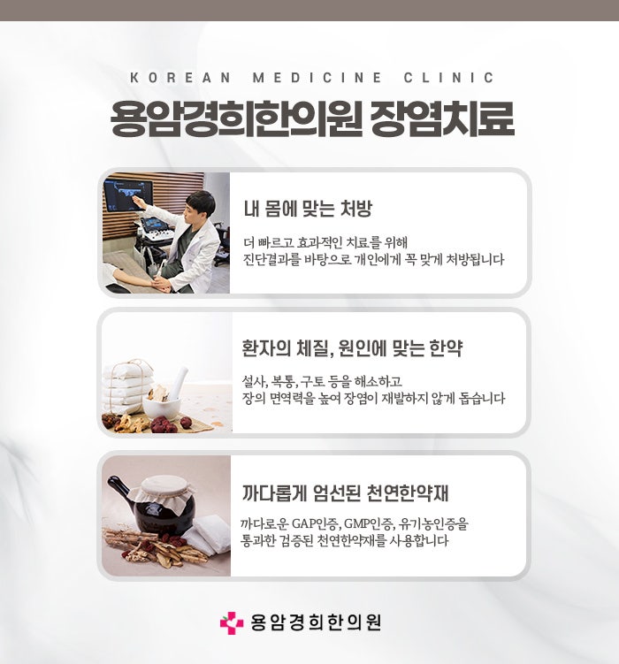 자연적인 방법으로 몸의 균형을 맞추고, 면역력을 강화하는 한방의 접근법은 장염의 재발을 막고, 장기적인 건강을 유지하는 데 좋은 방법이 될 수 있습니다. 따라서 장염에 대한 예방과 치료를 위해서는 한방 치료를 고려하는 것이 매우 유익할 수 있으며, 이는 단기적인 증상 개선뿐만 아니라 장기적인 건강 회복에도 큰 도움이 될 것입니다. 감사합니다.