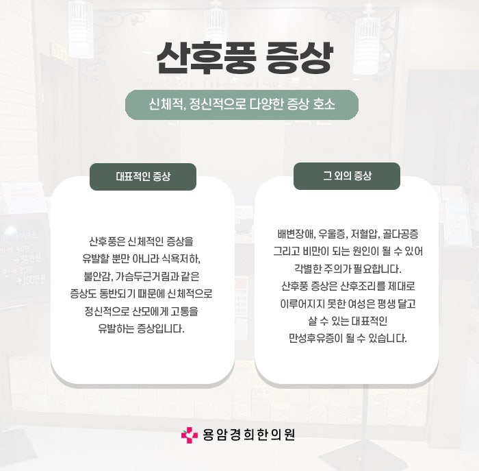 산후풍은 출산 후 여성에게 발생할 수 있는 질환으로, 주로 출산 후 몇 주에서 몇 달 사이에 발생하는 통증, 피로감, 그리고 체력 저하와 관련된 증상들을 말합니다. 이 질환은 한자로 산후는 출산 후의 상태를 의미하고, 풍은 체내에 풍한이나 습기 등 외부의 기운이 침입하여 발생한 불균형을 나타내는 개념입니다. 즉, 산후풍은 출산으로 인한 몸의 변화와 피로, 그리고 외부적인 요인들이 결합되어 나타나는 증상들로 이해할 수 있습니다. 산후풍은 전통적으로 여성의 재생불량이나 기혈이 허약해진 상태로 설명되며, 그 원인과 증상은 매우 다양하고, 적절한 관리가 이루어지지 않으면 만성화되거나 다른 질환으로 발전할 수 있어 방서동산후관리한의원의 도움을 받으시면 좋습니다.