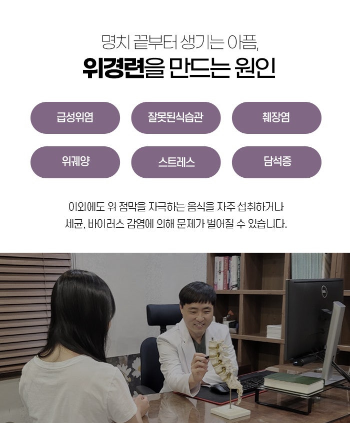금천동위경련은 위장 근육이 갑작스럽고 강하게 수축하면서 나타나는 통증을 말합니다. 위는 소화기관 중에서도 매우 중요한 역할을 담당하는 기관으로, 음식물을 소화하고 영양분을 흡수하는 과정에서 위의 기능이 원활하게 이루어져야 합니다. 하지만 여러 가지 원인으로 인해 위 근육이 과도하게 수축하거나 경련을 일으키게 되면 심한 통증과 불편함이 동반되는 위경련이 발생할 수 있습니다. 위경련은 단순한 소화 불량이나 위염, 위궤양, 위장관 기능 이상 등 다양한 위장 질환의 증상으로 나타날 수 있으며, 때로는 스트레스나 생활 습관과도 깊은 관련이 있습니다.