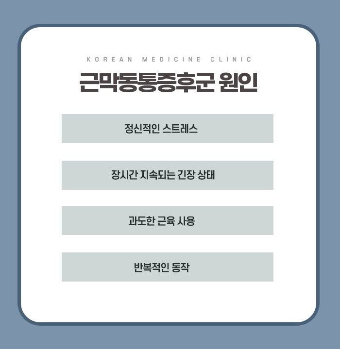 근막동통증후군의 주요 원인 중 하나는 근육의 과도한 사용입니다. 일상생활에서 반복적인 동작이나 잘못된 자세로 인해 특정 근육이 지나치게 긴장되거나 과도하게 사용되면, 그 부위에 근막 결절이 형성됩니다. 특히, 오랜 시간 앉아 있는 습관이나 한 자세로 작업하는 직업을 가진 사람들에게 이 질환은 더욱 흔하게 나타납니다. 컴퓨터 작업이나 스마트폰을 장시간 사용하면서 목이나 어깨, 허리 등에 지속적인 긴장이 발생하고, 이로 인해 근육에 미세한 손상이 반복되며, 결국 근막 결절이 생기게 됩니다. 또 다른 원인으로는 심리적인 스트레스입니다. 스트레스가 심하면 근육이 긴장되고, 이는 혈액순환의 장애를 유발할 수 있습니다. 특히 심리적 압박감이나 불안감이 지속되면 근육이 계속해서 긴장 상태를 유지하게 되어, 그 부위에서 통증을 유발하는 근막 결절이 생기게 된다고 방서동근막동통증후군한의원에서는 말합니다.