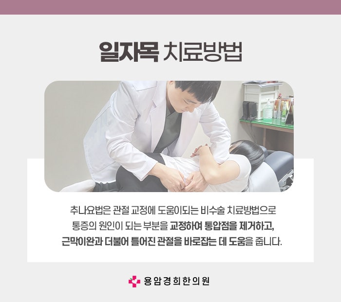 이러한 일자목의 증상과 원인을 치료하기 위해 많은 사람들이 추나요법을 고려합니다. 추나요법은 한방에서 사용하는 용암동일자목치료 방법으로, 손으로 신체의 비정상적인 정렬을 바로잡고, 관절과 근육의 균형을 맞추는 방법입니다. 추나요법은 목, 어깨, 척추의 정렬을 바로잡아 일자목을 개선하는 데 도움이 됩니다. 추나요법의 가장 큰 장점은 비침습적이고 약물을 사용하지 않는 자연적인 치료법이라는 점입니다. 이를 통해 목과 어깨의 경직을 풀어주고, 목뼈의 정렬을 개선하며, 신경의 압박을 개선하는 데 도움을 줄 수 있습니다. 추나요법은 목과 척추에 적용할 수 있는 여러 가지 기술을 사용하여, 근육과 인대의 경직을 풀어주고, 잘못된 자세로 인해 발생한 신체의 불균형을 바로잡습니다.