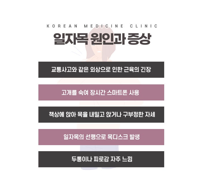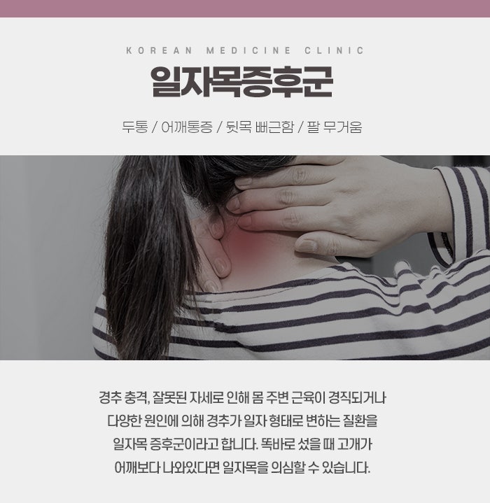 일자목은 현대 사회에서 흔히 발생하는 목 건강 문제 중 하나로, 특히 스마트폰과 컴퓨터를 자주 사용하는 사람들 사이에서 자주 나타납니다. 일자목은 본래 경추가 자연스러운 커브를 가지고 있는 상태에서, 그 커브가 사라지고 일자 모양으로 변형되는 증상을 말합니다. 이로 인해 목과 어깨에 불편함이 발생하며, 심한 경우 두통이나 팔 저림, 목 디스크 등으로 이어질 수 있습니다. 일자목은 단순한 자세 문제로 여겨질 수 있지만, 그로 인한 불편함과 건강에 미치는 영향은 매우 심각할 수 있습니다. 특히, 일자목이 지속되면 목, 어깨, 허리 등 전신의 통증을 유발하며, 신경학적인 증상으로 팔 저림, 손목 통증, 두통 등이 동반될 수 있습니다. 이처럼 일자목은 일상생활에서 큰 불편함을 초래할 수 있기 때문에 조기 용암동일자목치료가 중요합니다.