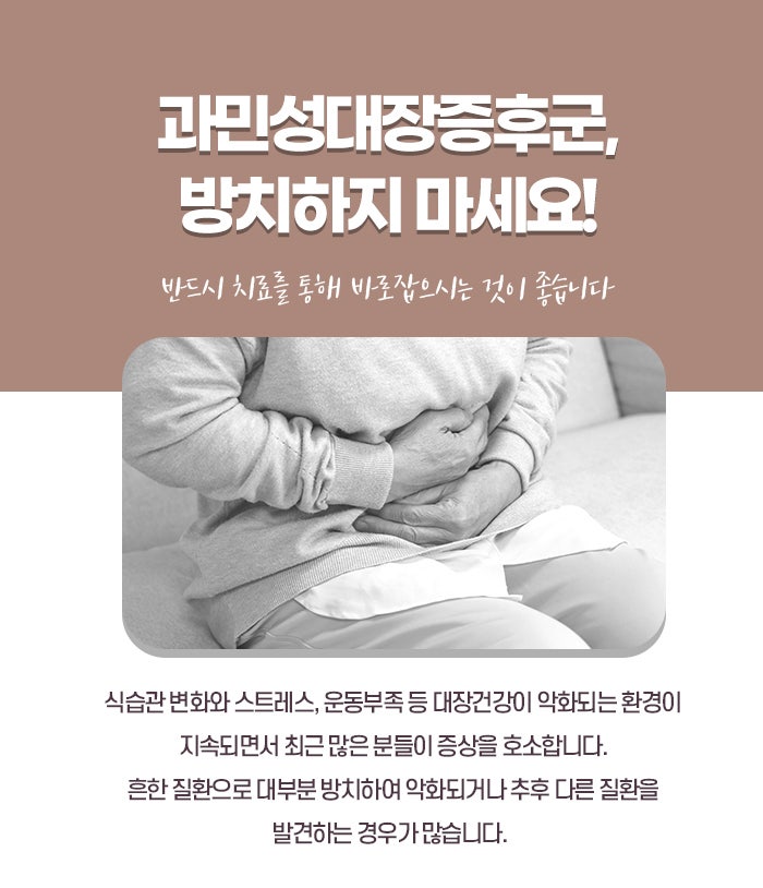 이 두 가지 증상이 교차하면서 나타날 수 있으며, 이로 인해 환자는 자주 불안감을 느끼고 생활에 지장을 받을 수 있습니다. 또한, 과민성대장증후군은 복부 팽만감과 가스 차는 느낌, 트림 등의 증상을 동반할 수 있습니다. 증상이 지속되거나 악화되면, 환자는 체중 감소, 피로감, 불안감, 우울증 등 정신적인 문제도 경험할 수 있어 조속한 동남지구과민성대장증후군치료가 필요합니다. 과민성대장증후군은 심리적 요인과 밀접하게 관련이 있기 때문에, 스트레스나 감정의 변화에 따라 증상이 심해질 수 있습니다. 특히, 일상생활에서의 심리적 스트레스가 장의 과민반응을 유발할 수 있으며, 이로 인해 복통이나 배변 장애가 더 심해집니다. 따라서 과민성대장증후군의 치료는 단순히 소화기계의 문제만을 다루는 것이 아니라, 정신적인 안정과 심리적인 치유도 함께 고려해야 합니다.