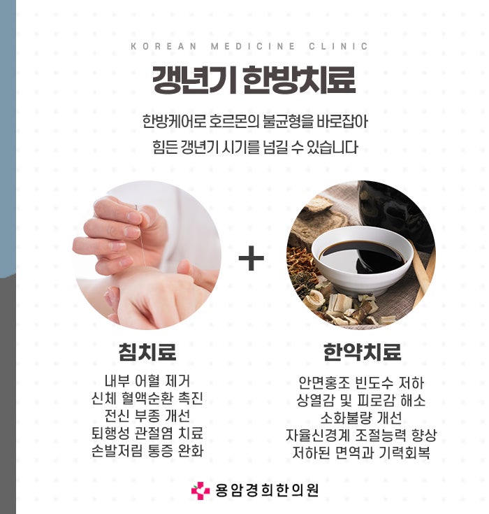 갱년기는 여성의 삶에서 반드시 거쳐야 하는 생리적인 과정이지만, 그 과정에서 동반되는 증상은 단순히 나이가 들어서 나타나는 불편함으로 넘기기에는 개인의 신체적·정신적·사회적 건강에 큰 영향을 미칠 수 있는 중요한 시기입니다. 갱년기 증상은 그 강도와 양상이 다양하고 복합적이기 때문에 단순한 약물치료보다는 원인을 이해하고 전신 상태를 조절하는 포괄적인 관리가 필요합니다. 한방치료는 개개인의 체질과 증상을 종합적으로 고려하여 자연스럽게 신체의 균형을 회복시키고 갱년기 증상을 개선시키는 데 도움을 줄 수 있으며, 특히 장기적인 건강 유지를 위한 체력 보강과 정신 안정에도 도움이 된다고 방서동갱년기한의원에서는 말합니다. 갱년기는 새로운 삶의 단계로 전환되는 시기인 만큼, 그 신호를 무시하지 말고 조기에 적절한 관리를 통해 보다 건강하고 균형 잡힌 중년 이후의 삶을 준비하는 것이 중요합니다.