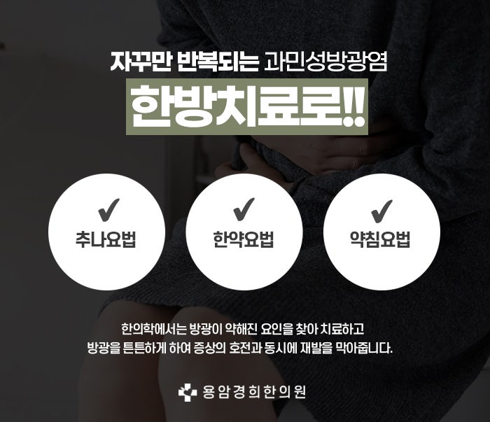 금천동과민성방광치료는 과민성방광을 단순한 증상이 아니라, 신체의 불균형으로 보는 관점에서 접근하기 때문에, 원인 치료에 초점을 맞추며, 지속적인 치료로 환자의 신체적, 정서적 건강을 회복하는 데 도움을 줍니다. 과민성방광은 단순히 배뇨 문제가 아니라, 환자의 삶의 질에 심각한 영향을 미치는 질환입니다. 따라서 이 질환을 관리하고 치료하려면, 정확한 원인 분석과 함께 적절한 치료가 필요합니다. 한방 치료는 과민성방광을 개선하고, 환자의 삶의 질을 높이는 데 도움을 줍니다. 과민성방광은 신체와 마음이 균형을 이루지 못할 때 발생하는 문제이므로, 한방 치료를 통해 몸과 마음의 건강을 함께 회복하고, 일상생활을 더 편안하게 만들 수 있습니다.