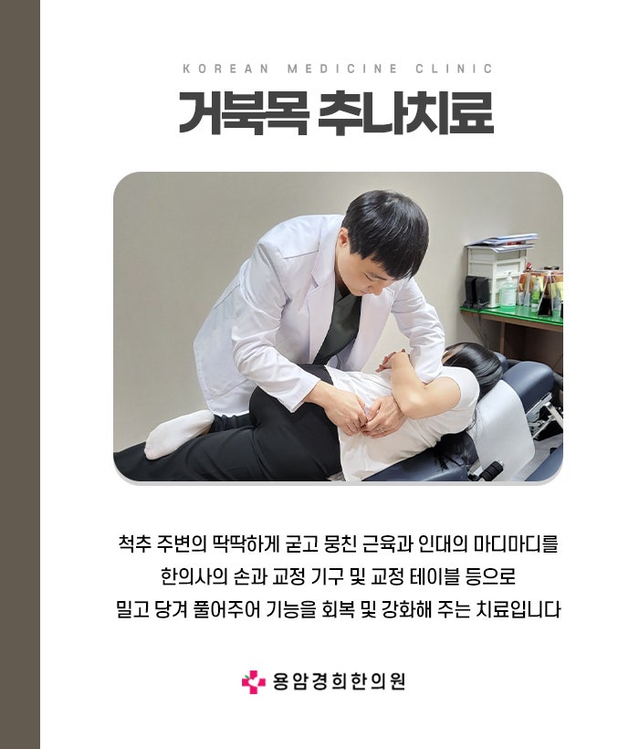 용암동거북목한의원에서는 거북목을 기혈 불균형, 경락의 막힘, 어혈 등으로 분석합니다. 한방 치료는 이들 원인에 맞춰 몸의 균형을 회복하고, 문제를 개선하는 데 중점을 둡니다. 한방에서는 거북목을 단순한 증상으로 보기보다는, 몸 전체의 균형과 조화가 깨진 결과로 인식하고, 이를 개선하기 위한 다양한 치료 방법을 사용합니다. 추나요법은 손이나 도구를 이용하여 신체의 불균형을 교정하는 치료법으로, 거북목 환자들에게 도움이 되는 치료 방법입니다. 이 치료법은 척추와 경락을 조정하여, 비정상적인 자세로 인한 문제를 치료하고, 경직된 근육을 이완시킵니다. 추나요법은 거북목으로 인한 신체의 불균형을 바로잡고, 척추와 목의 구조적 문제를 개선하는 데 중요한 역할을 합니다.