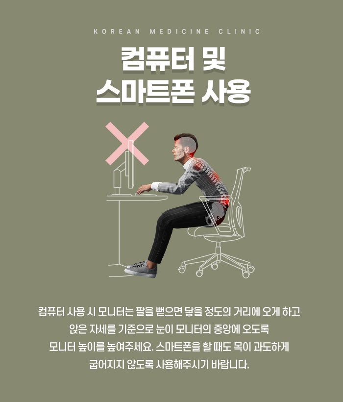 목디스크의 가장 큰 원인은 척추나 디스크에 가해지는 과도한 부담입니다. 일상생활에서 잘못된 자세나 습관으로 인해 척추에 불균형한 힘이 작용할 수 있습니다. 특히 컴퓨터나 스마트폰을 장시간 사용하거나, 고개를 숙이고 장시간 책을 읽는 등의 습관은 목에 과도한 부담을 주게 됩니다. 이러한 잘못된 자세는 디스크의 부담을 증가시키고, 시간이 지나면서 디스크가 탈출하거나 손상될 위험을 높입니다. 또한, 목을 갑자기 비트는 동작이나 무리한 운동으로 인해 부상을 입을 수도 있습니다. 이러한 외상은 디스크에 물리적인 압력을 가해 탈출을 일으킬 수 있어 방서동목디스크치료가 조속히 필요합니다.