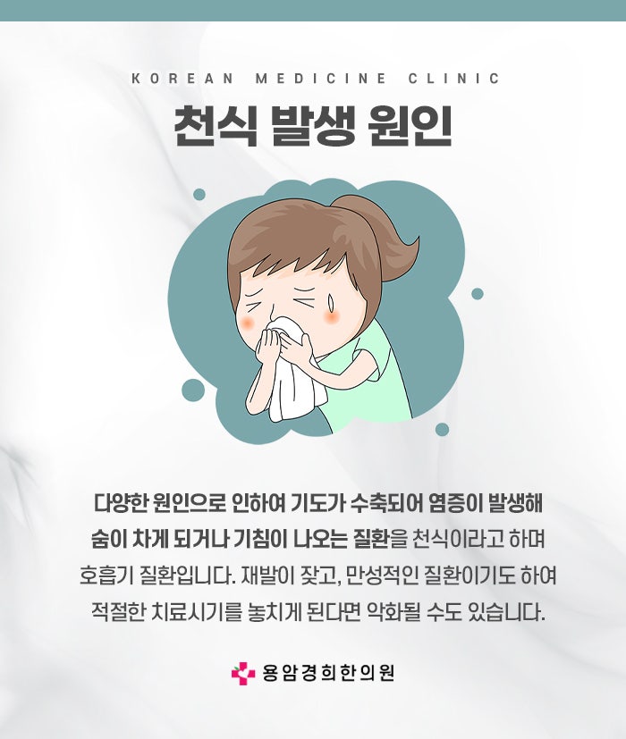 천식은 꾸준한 관리와 올바른 치료가 병행될 때 충분히 치료가 가능한 질환입니다. 증상이 갑작스럽게 나타나거나 악화될 때 당황하지 말고 침착하게 대응하며, 도움을 받는 것이 가장 중요합니다. 비록 만성 질환으로 인해 불편함이 있을 수 있지만, 적극적으로 관리하면 건강한 일상과 활동적인 생활을 유지할 수 있습니다. 여러분의 몸은 스스로 치유하고 균형을 맞출 힘이 있으며, 여러분의 꾸준한 노력과 한방 치료가 그 힘을 더욱 강하게 해줄 것입니다. 천식을 겪는 모든 분들이 자신의 몸을 잘 이해하고 사랑하며, 오늘보다 더 건강하고 행복한 내일을 맞이하길 진심으로 응원합니다.