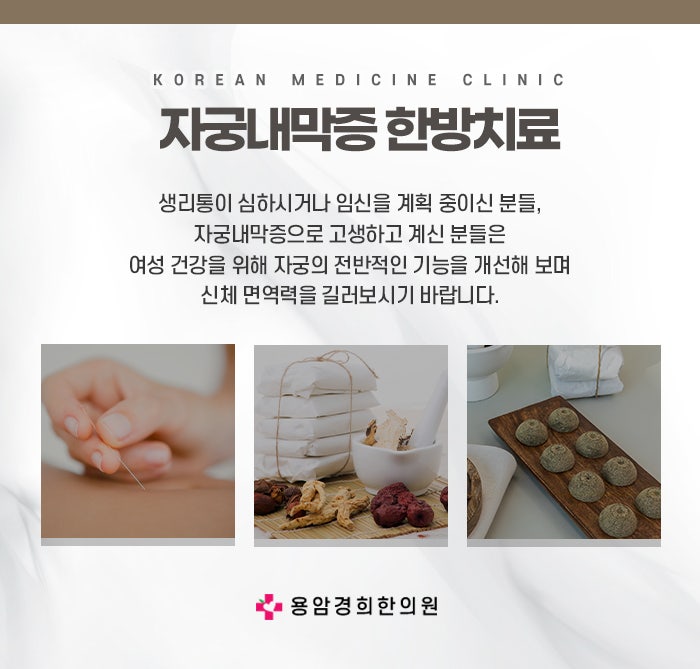 또한 장기적으로는 자궁외 임신, 난소낭종, 장기 손상 등 합병증의 위험이 증가할 수 있어 조기 용암동자궁내막증치료가 중요합니다. 한방에서는 자궁내막증을 단순히 자궁 문제로 보지 않고, 간, 신장, 비장 등 장부 기능의 불균형, 기혈 순환 장애, 체내 냉습, 혈어 등 다양한 내부적 요인과 외부적 요인을 종합적으로 평가하여 치료합니다. 한방 치료법은 환자의 체질과 증상, 통증 정도와 위치, 생리 주기 상태를 종합적으로 고려하여 시행되며, 주요 방법으로는 한약, 침치료, 약침, 뜸, 부항 등이 있습니다. 한약 치료는 기혈 순환을 개선하고 혈어와 냉습을 제거하며, 자궁과 난소 기능을 보강하여 생리통과 골반통을 개선하고, 난소 환경을 개선하여 임신 가능성을 높이는 데 도움을 줍니다.