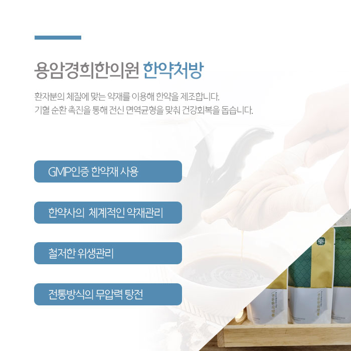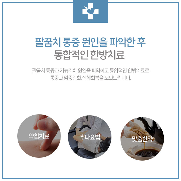그리고 건강한 혈액을 생성해 면역력 향상에도 도움이 됩니다. 처방드리는 한약은 팔꿈치 통증 원인과 동반되는 증상, 건강상태에 따라 복용횟수와 기간이 달라질 수 있습니다. 침은 혈자리를 자극해 팔과 팔꿈치 등의 부기와 염증을 완화하며 통증을 줄여줍니다.