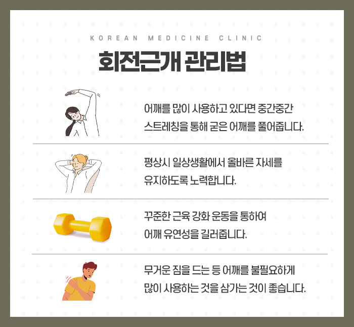 또한 평소 구부정한 자세를 교정하여 어깨가 앞으로 말리는 라운드 숄더 현상을 막는 것이 중요한데 이는 어깨뼈 사이의 공간을 넓혀 힘줄이 눌리는 것을 방지해 주기 때문입니다. 컴퓨터 작업을 하거나 스마트폰을 볼 때 고개를 숙이지 않도록 높이를 조절하고 틈틈이 기지개를 켜며 상체의 긴장을 완화해 주는 습관을 들여야 합니다. 담배는 미세혈관을 수축시켜 힘줄로 가는 영양 공급을 방해하므로 멀리해야 하며 과도한 스트레스 역시 근육을 경직시켜 통증 민감도를 높이므로 마음을 편안하게 다스리는 노력이 수반되어야 합니다. 꾸준하고 세심한 관리는 어깨의 기능을 유지하고 더 큰 불편함으로 이어지는 것을 막아주는 든든한 방어막이 됩니다. 금천동 회전근개파열치료와 더불어 사소한 습관의 변화가 모여 어깨의 유연함을 되찾아주고 다시금 활기찬 생활을 할 수 있는 토대를 마련해 줄 것입니다.