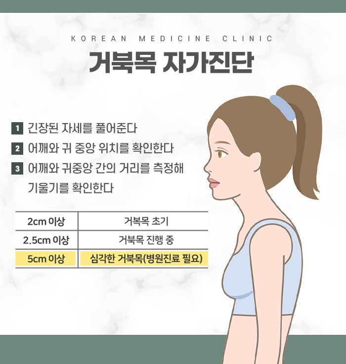 또한, 생활습관에서 바른 자세와 주기적인 운동, 스트레스 관리는 거북목을 예방하고 치료하는 데 필수적입니다. 거북목은 단순한 자세 문제를 넘어서 전신 건강에 영향을 미치는 문제이므로, 올바른 자세와 생활 습관의 교정을 통해 꾸준히 관리하고 개선하는 것이 중요합니다. 한방 치료와 건강한 생활습관을 병행하면, 거북목 증상의 개선와 예방뿐만 아니라 신체의 균형을 맞추고, 전반적인 건강을 향상시킬 수 있습니다. 따라서 거북목을 단순한 증상이 아니라 전체적인 건강 상태를 개선하는 기회로 삼는 것이 매우 중요합니다.
