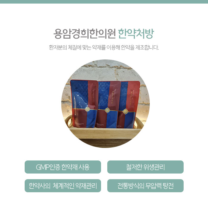 그리고 체질에 맞는 약재를 구성해 조제되는 한약은 손상된 디스크 주변 근육과 인대의 재생을 돕고 어혈을 제거해 통증과 염증을 완화합니다. 또한 건강한 혈액을 생성해 면역력을 향상시키고 디스크로 인한 증상 회복과 건강증진을 기대할 수 있습니다.